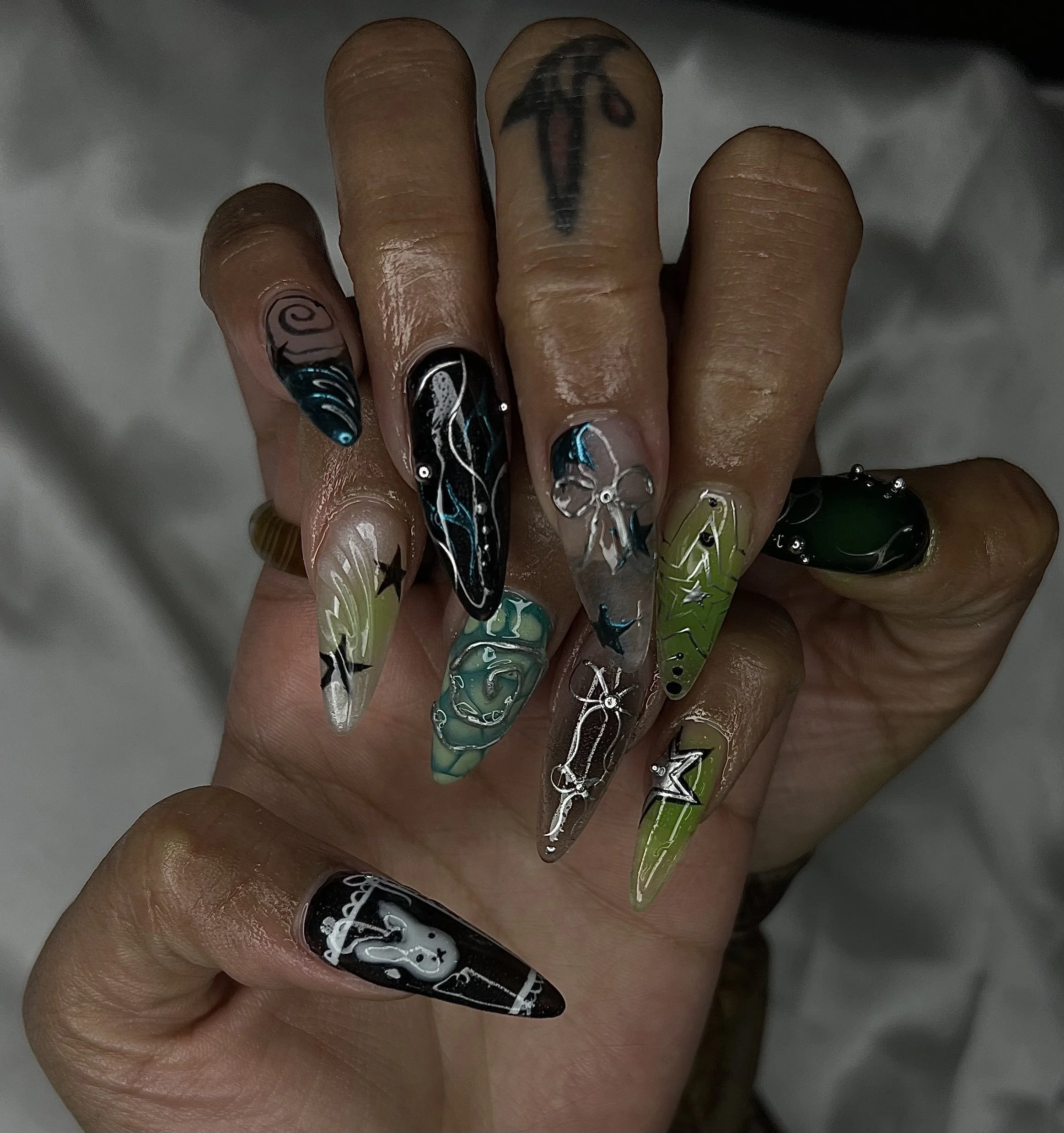 For my gals that want heavily intricate designs with differentiation between each fingers.