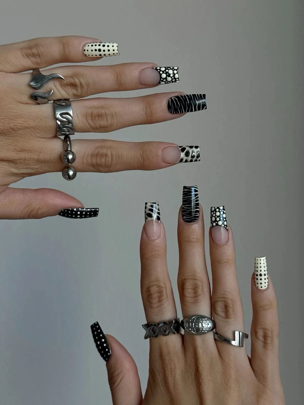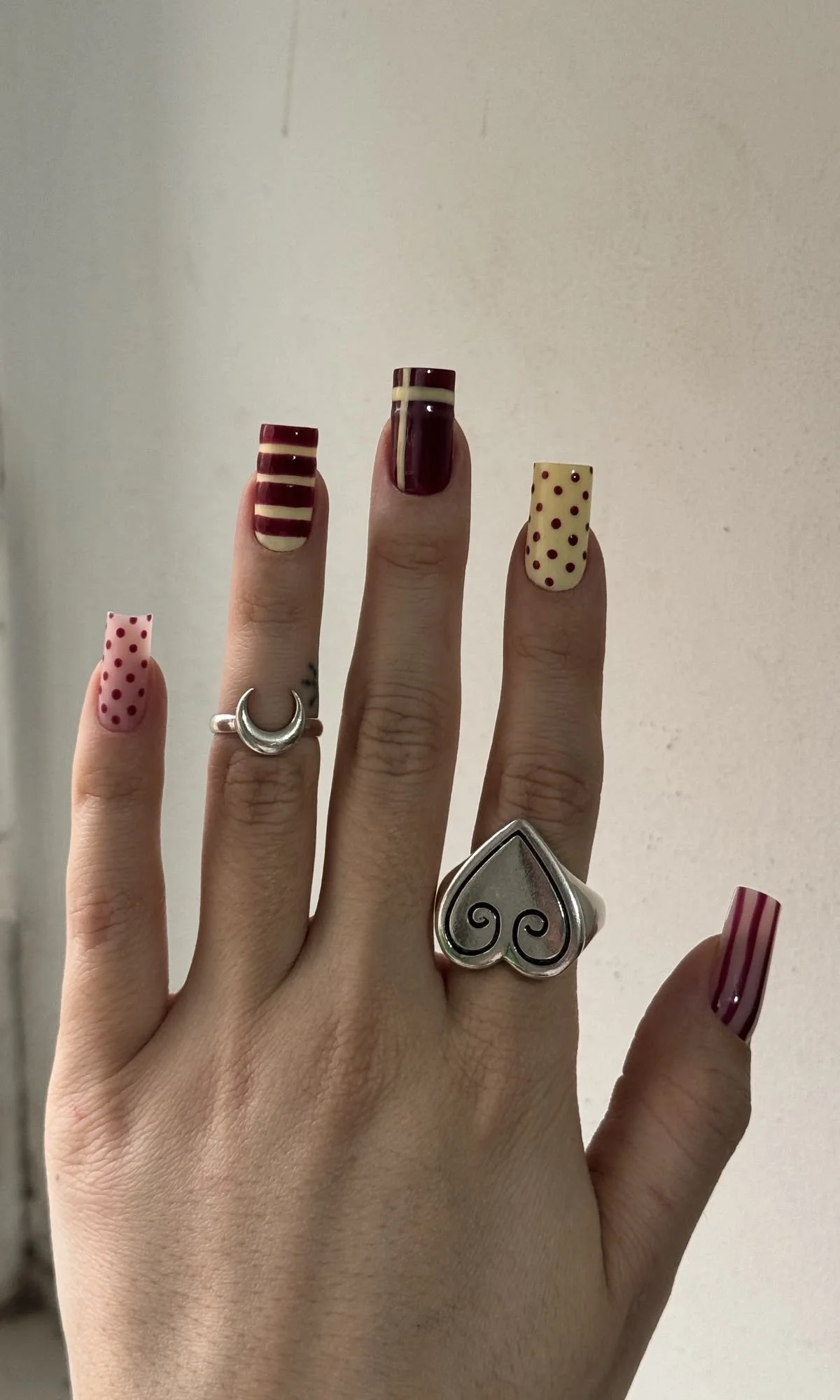 Consistent minimal design across all 10 fingers (Polka dots, frenchies, ombré, etc.)